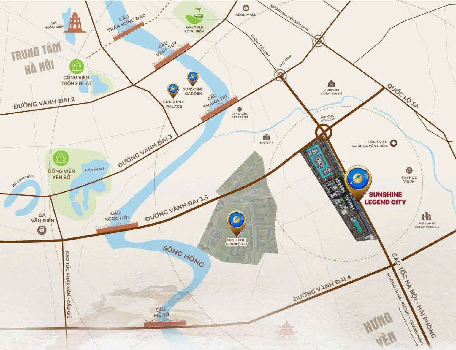 Mặt bằng Sunshine Legend City được quy hoạch bài bản trên tổng diện tích khoảng 50ha tại xã Long Hưng, huyện Văn Giang, tỉnh Hưng Yên. Dự án sở hữu thiết kế hiện đại, hài hòa với thiên nhiên và đậm chất văn hóa bản địa, mang đến một không gian sống đa dạng, tiện nghi và đậm dấu ấn kiến trúc.